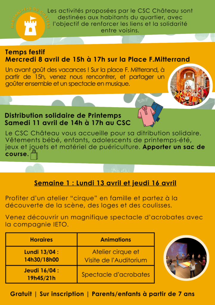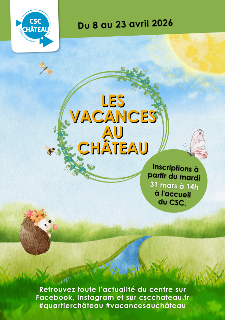 Inscriptions au CSC Château le 11 février pour les activités des vacances de février