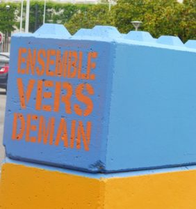 Le message “Ensemble vers demain” écrit en orange sur un plot bleu